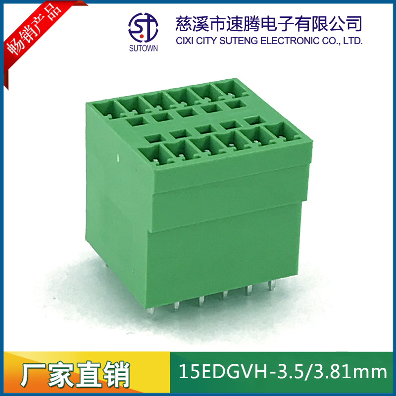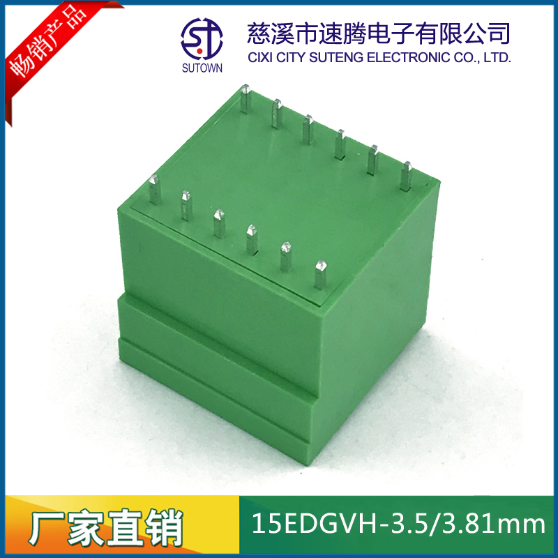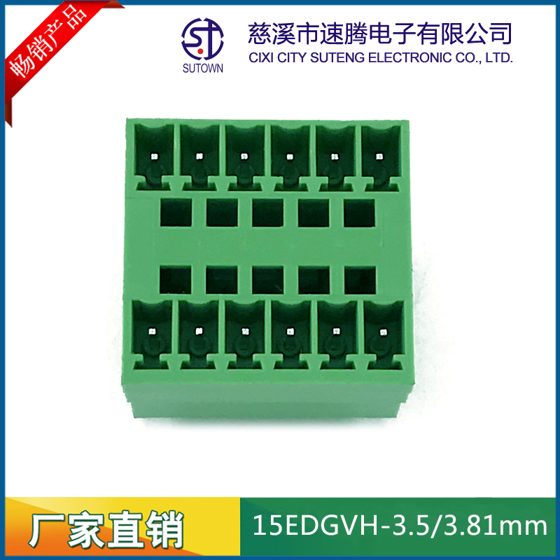 材質(zhì)及規(guī)格處理間距:3.5/3.81mm塑件:PA66 UL94V-0觸點材料:磷青銅,鍍鎳螺絲:鋼,M2.0.鍍鎳機械性能額定電壓:300V額定電流:8A使用溫度:-40℃~+105℃瞬時溫度:+250℃,5s耐電壓:AC2000V/Min接觸電阻:20mΩ絕緣電阻:5000MΩ/1000V使用線徑:28-16AWG 1.5mm2扭矩:0.2Nm剝線長度:6-7mm
